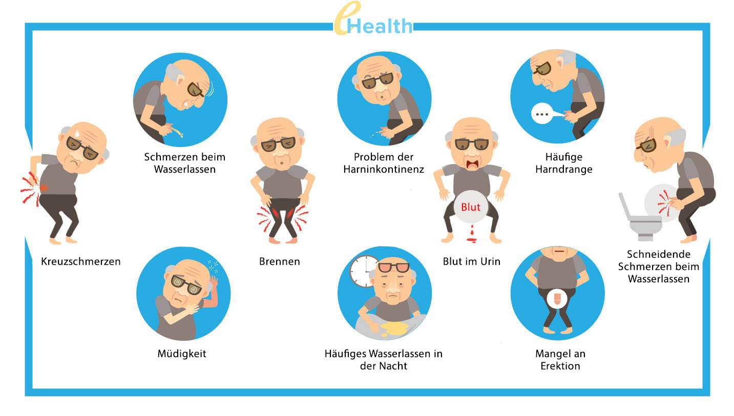 - Häufiges Wasserlassen, Brennen in der Harnröhre;